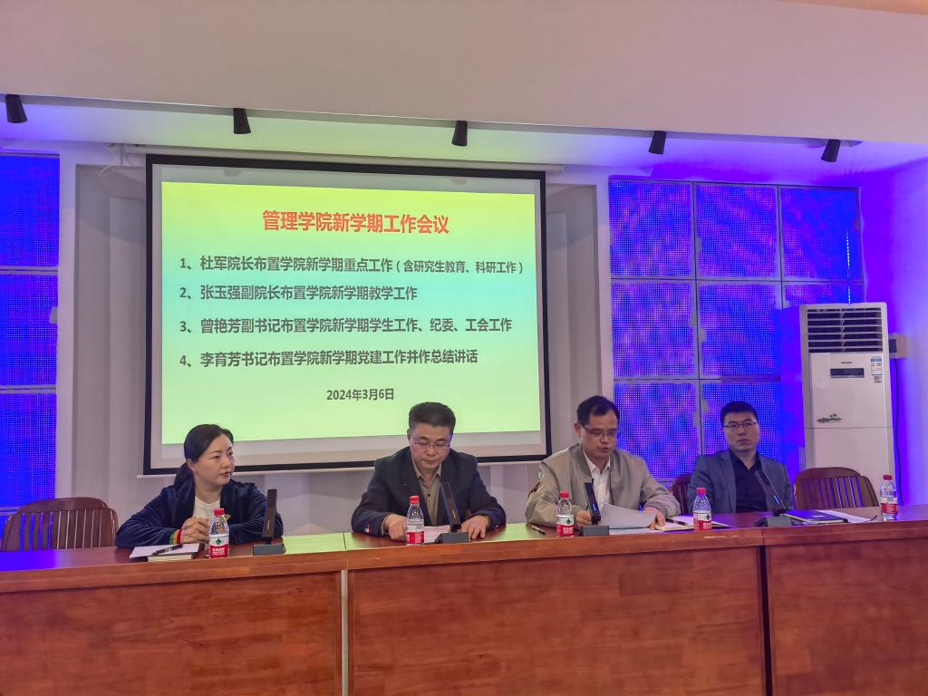 会上,新提任经理杜军对新学期重点工作进行部署。在团队建设方面,强调将加强重点学科内涵发展,推进学位点与专业建设。本科教学方面,将深入推进一流专业和一流课程建设,积极推进商科认证与国际合作。科学研究方面,将努力提升科学研究水平,广泛开展学术交流活动,促进科研平台建设。大力发展研究生教育方面,做好研究生的招生和培养工作,不断提升研究生人才培养质量。团队队伍建设方面,加强青年教师培养,促进教师教学科研能力提升,引进高层次人才。公司综合管理方面,加快推进做好文科楼建设,优化公司管理机制。