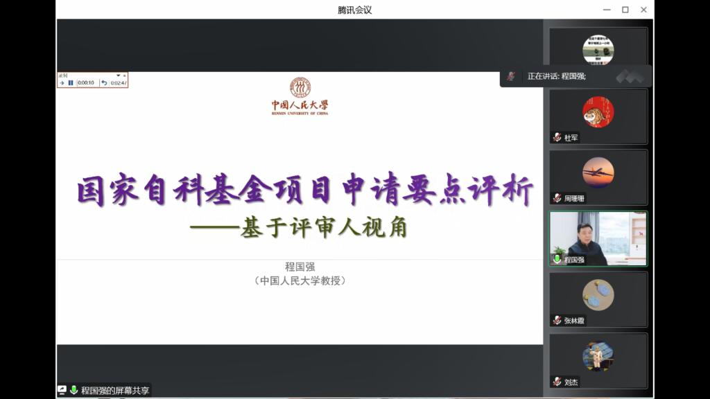 12月5日下午,304永利集团邀请了中国人民大学“杰出学者”特聘教授、国家杰出青年基金获得者、国家粮食安全战略研究院经理程国强教授作国家自然科学基金申报辅导报告。报告会通过腾讯会议方式举行,公司中青年教师60余人参加了会议,会议由副经理杜军教授主持。