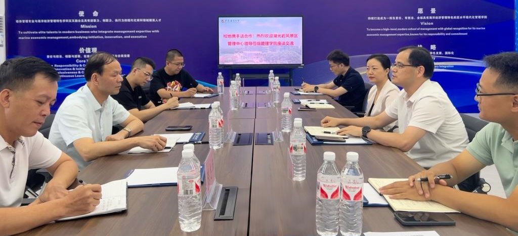 会上,陈志华详细介绍了湖光岩风景区的基本情况,以及近年来景区发展面临的游客量下滑、消费潜力不足等困境。李团基希望通过与公司深度合作,早日实现校企共赢。杜军认为,公司6个专业与景区业态升级、品牌运营、产品开发等方面需求高度适配,可从文创产品开发、旅游市场调研、专业咨询建议等方面深入开展产学研合作。旅游管理系主任李志勇从产品开发、数字营销、新媒体宣传等方面提出建议。曾艳芳建议景区充分盘活现有资源,推进景区产品项目迭代升级,不断提升景区知名度和吸引力。