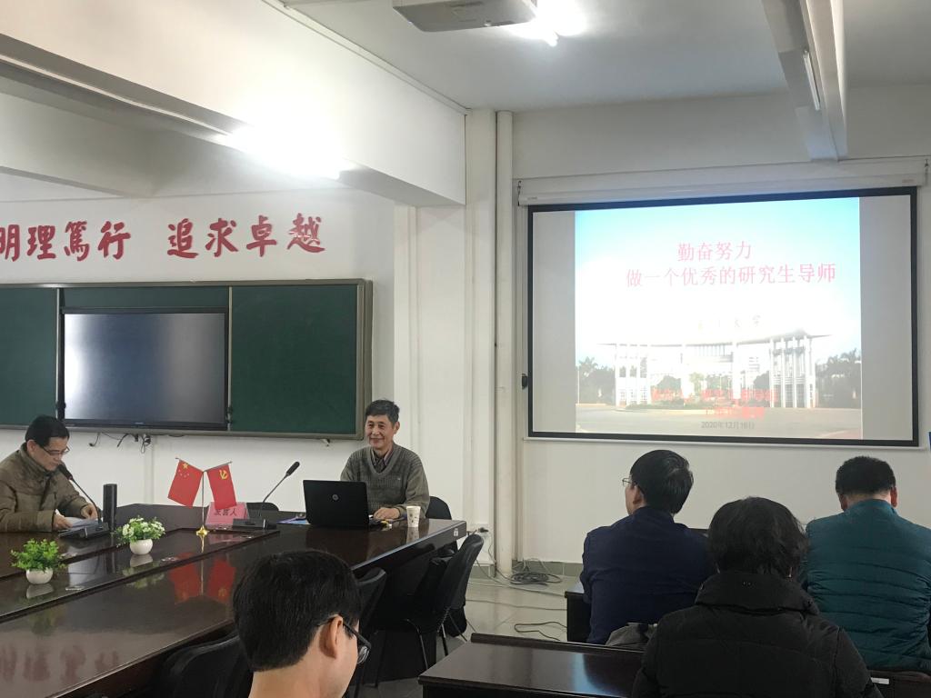 会上,王维民以“勤奋努力做一名优秀的研究生导师”为题,结合自己近20年研究生教学及管理工作经验,从“德、政、课、研、创、撰、和”七个方面阐述了如何做好一名研究生导师。他强调,作为一名研究生导师,一是加强师德师风建设,要有坚定的政治信念和爱国主义情怀;二是要与时俱进,站在学术最前沿,服务地方发展;三是加强课程建设,培养研究生的学习能力;四是要引导培育研究生良好的科研素养,潜心科研,热爱研究。五是培养研究生的思考能力和创新能力,学会掌握各种研究方法;六是要培养研究生具有良好的归纳总结能力和扎实的文字功底,掌握课题研究的基本范式和框架结构。七是要有较好的团队协作能力,学会团队管理。