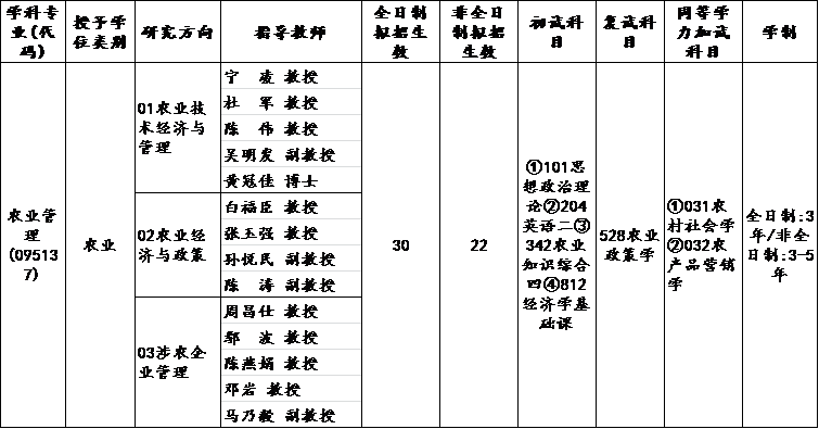 (二)农业硕士(专业学位硕士)-农业管理领域(095137)